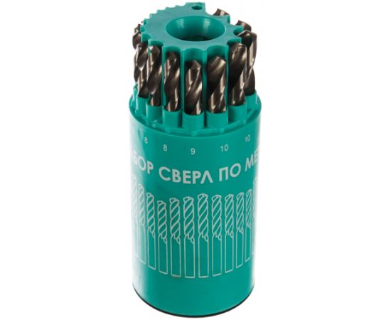 Набор состоит из 16 сверел диаметрами от 3 мм до 13 мм. Набор поставляется в специальном "стакане".