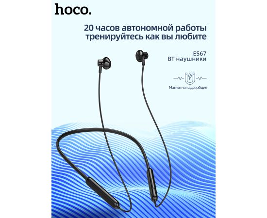 Наушники ES67, HOCO, беспроводные спортивные наушники с обручем, черные