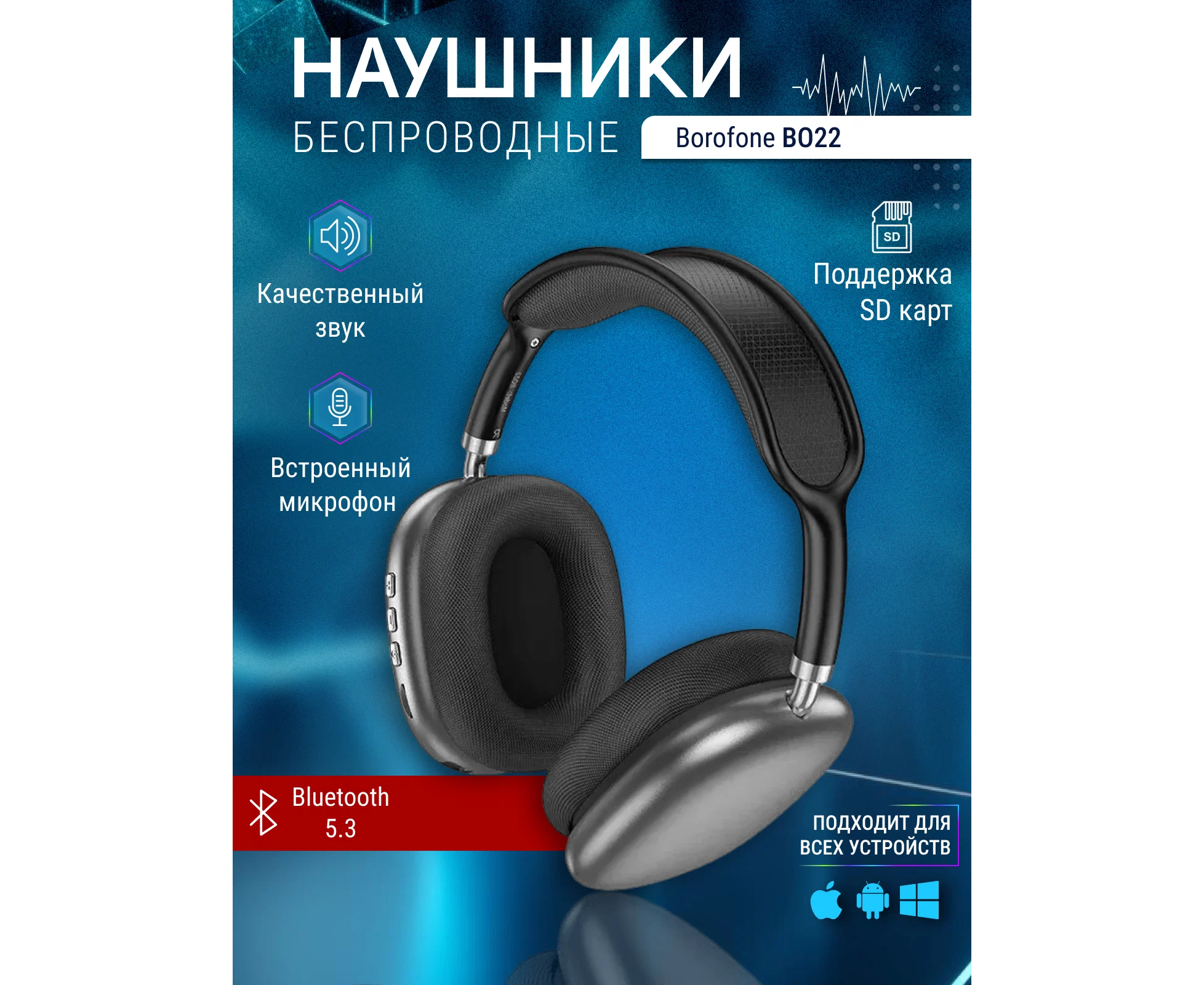 Наушники bluetooth полноразмерные BOROFONE BO22 Plus Elegant BT headphones (серый)