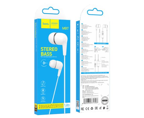 Наушники внутриканальные HOCO M97 Enjoy, микрофон, кнопка ответа, кабель 1.2м, цвет: белый (1/420)