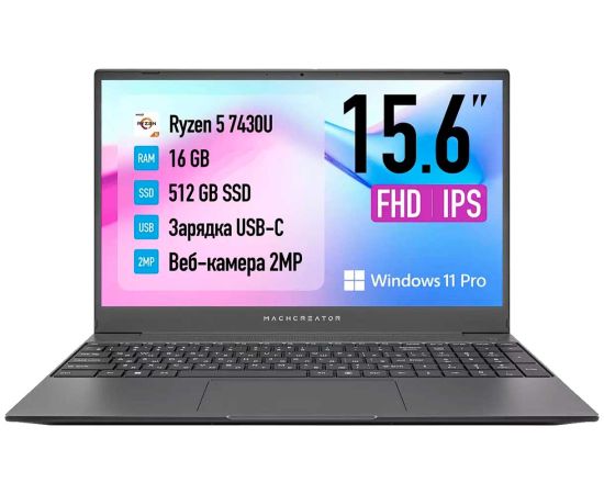 Ноутбук Machcreator One R5 (JJ00GB00GRU) 15.6 " Ryzen 5 7430U 6 ядер Radeon Vega 7 16 ГБDDR4 512 ГБSSD Windows 11 Professional серый 1.84 кг RuEng