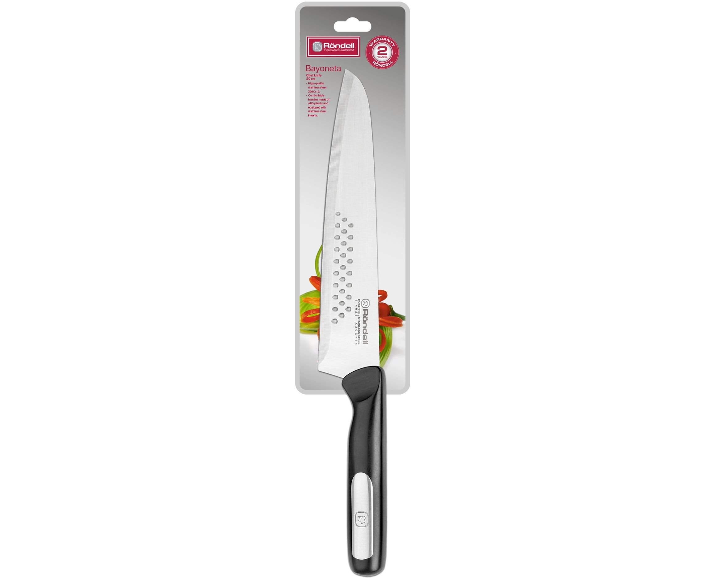 Нож кухонный Rondell Bayoneta RD-1570 стальной поварской лезв.200мм прямая заточка черный блистер