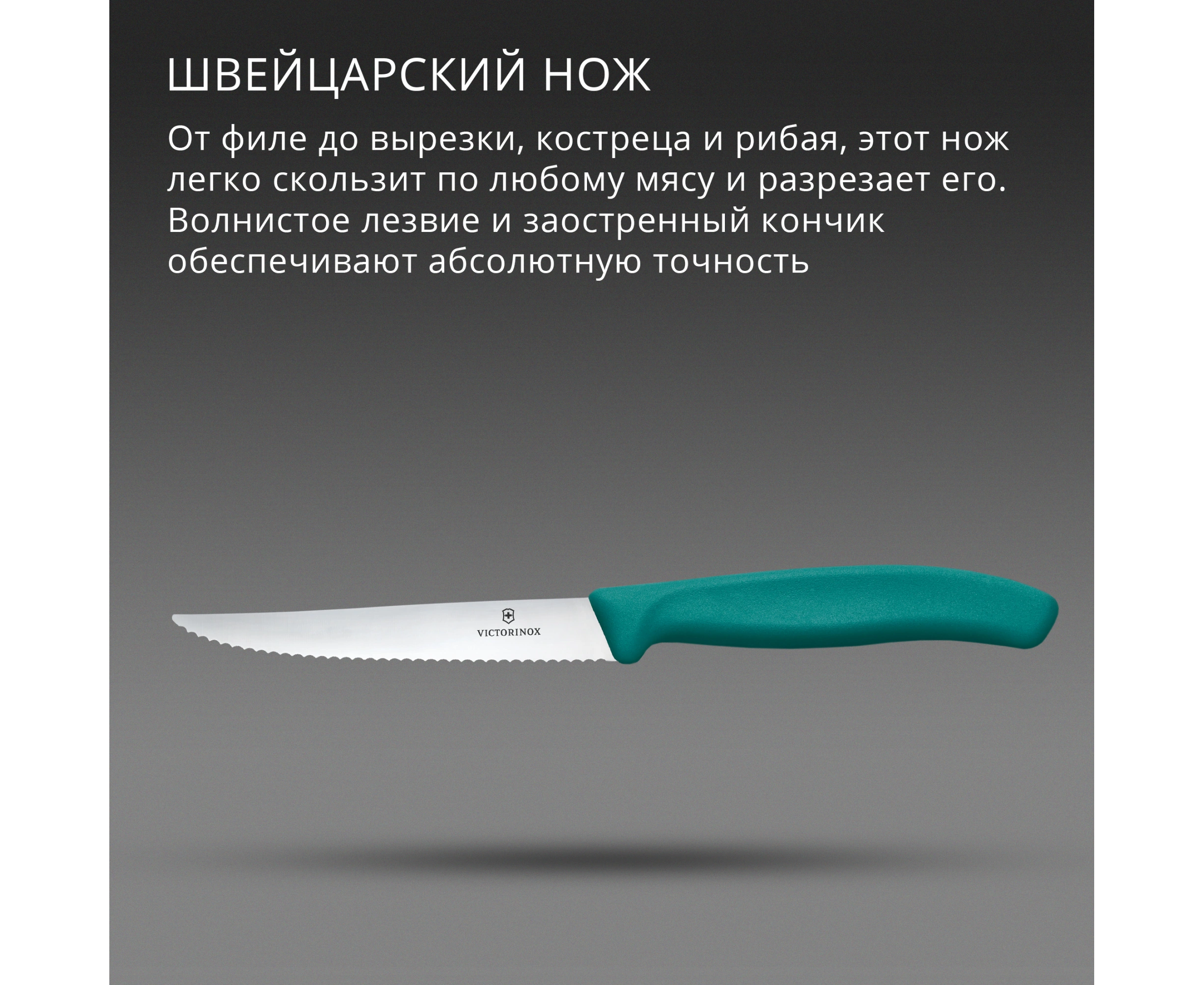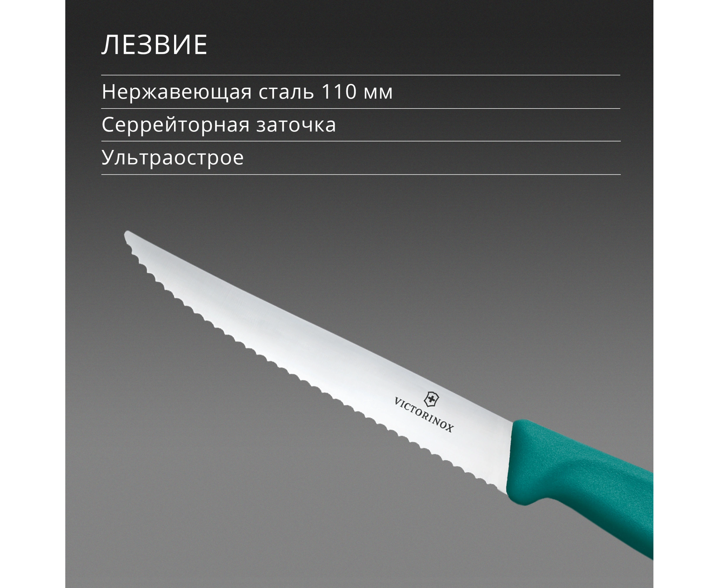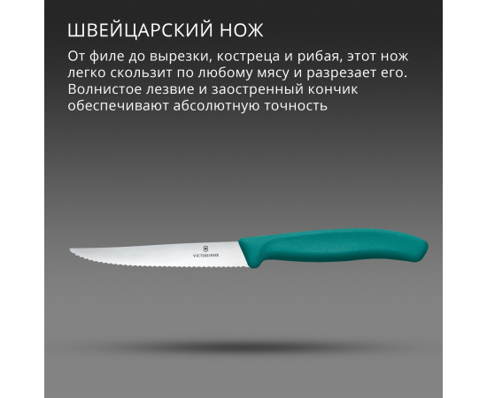 Нож кухонный Victorinox Swiss Classic 6.7234.C1 для стейка/пиццы лезв.110мм серрейт. заточка зеленый