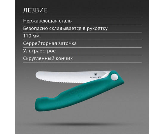 Нож кухонный Victorinox Swiss Classic 6.7834.FC1 стальной столовый лезв.110мм серрейт. заточка зеленый карт.коробка