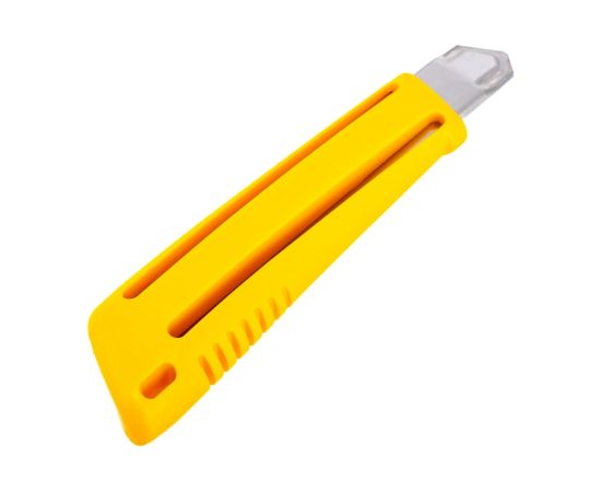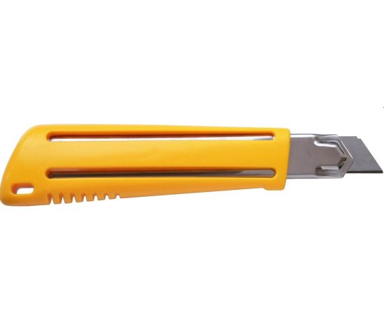 Экономичный нож OLFA с выдвижным лезвием 18 мм OL-EXL для тяжелых работ с системой автоматической фиксации лезвия Auto Lock. Рукоятка оснащена специальными ребрами и упором для надежного хвата.