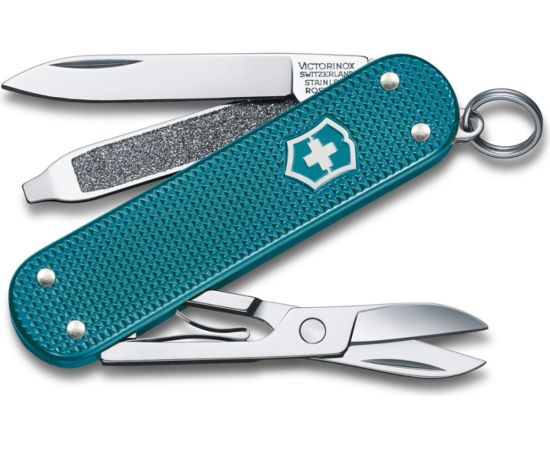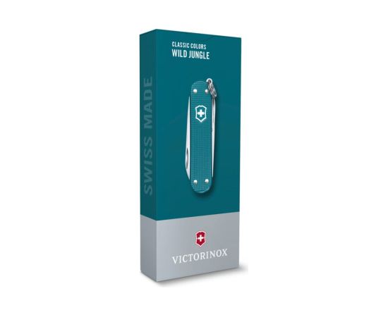 Нож-брелок Victorinox Classic SD Alox Colors Wild Jungle 58 мм, 7 функций, тёмно-бирюзовый 0.6221.242G имеет стильный дизайн.