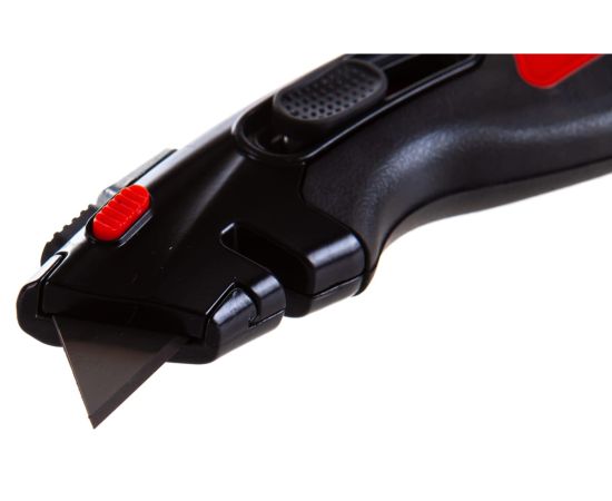 Нож строительный монтажный КВТ НСМ-12 78497 используется в области отделочных, ремонтных, строительных работ для разрезания тонких материалов: бумаги, резина, картона, пластика. Конструкция состоит из трапецевидного двухстороннего лезвия и эргономичного корпуса с нескользящими вставками. Имеются функции фиксации и автовозврата лезвия, а также стопорез и механизм быстрой смены лезвий. Рукоятка оснащена отсеком для хранения лезвий. Прорезиненный упор для большого пальца обеспечивает удобство использования изделия.