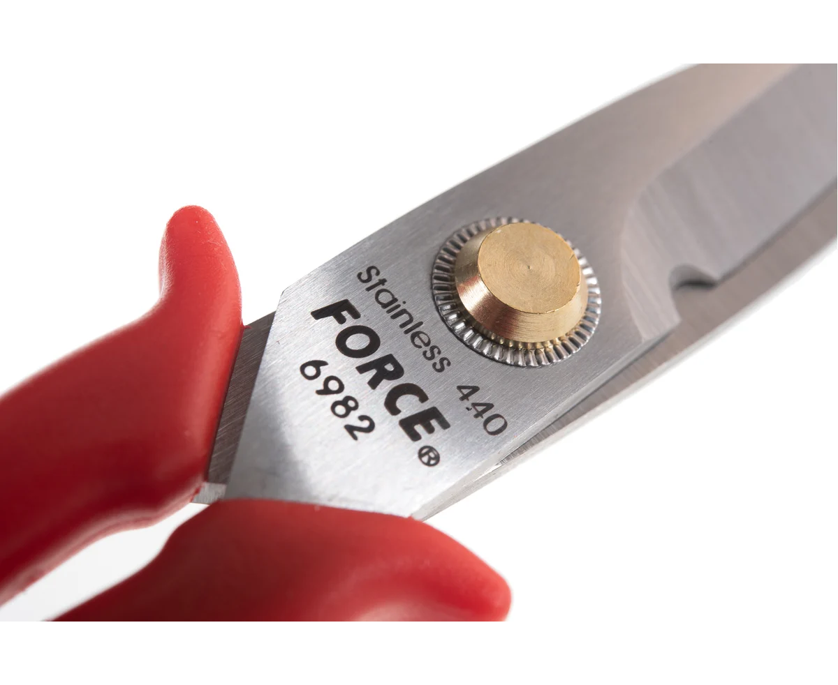 Технические ножницы L=145 мм FORCE 6982 подойдут для работы с листовым металлом, проводами, проволокой. Широкие кольца удобны для пальцев и не сжимают их.