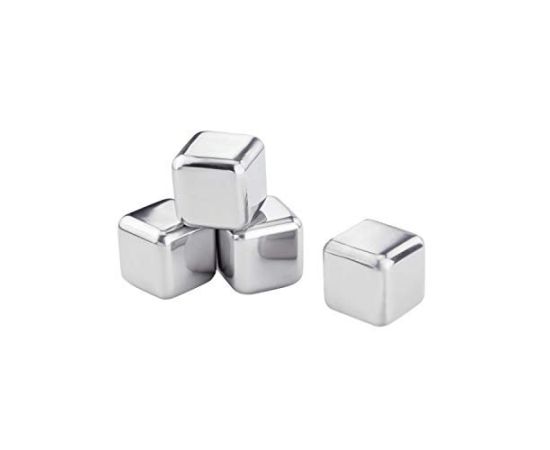 Набор кубиков для охлаждения включает 4 стальных кубика размером 26 x 24 x 32 мм, емкость для их хранения и щипцы для перемещения искусственного льда. Кубики изготавливаются из качественной стали категории 304, которая разрешена для контакта с пищевыми продуктами. Прослужить такие кубики могут много лет, так как они устойчивы к процессам окисления и механическому повреждению (например, царапинам), а также не подвержены бактериальному воздействию.