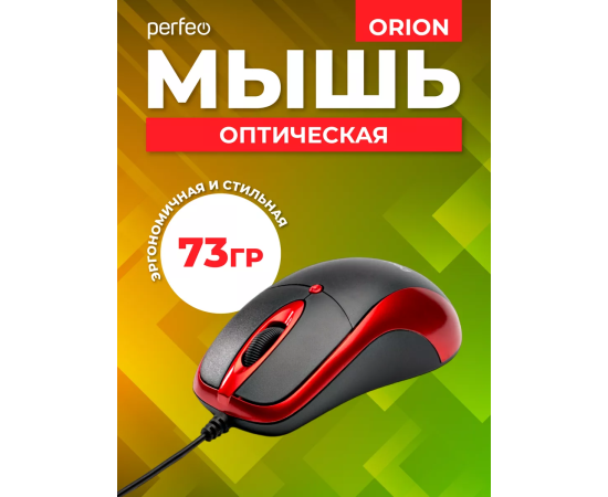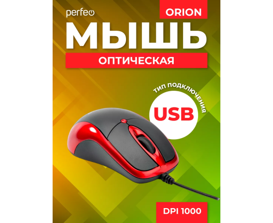 Оптическая мышь Perfeo "ORION", 3 кн, DPI 1000, USB, чёрный/красный