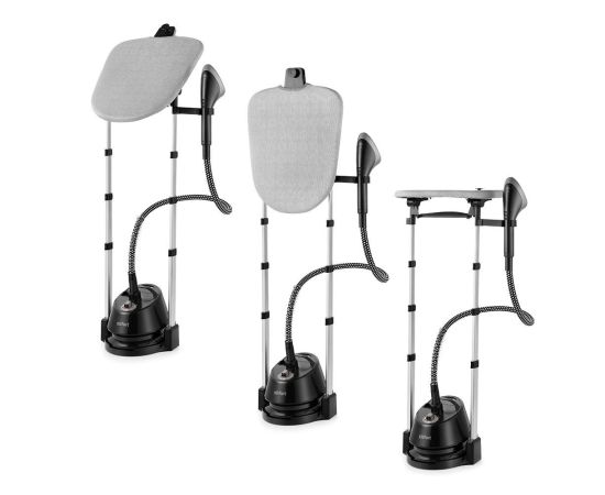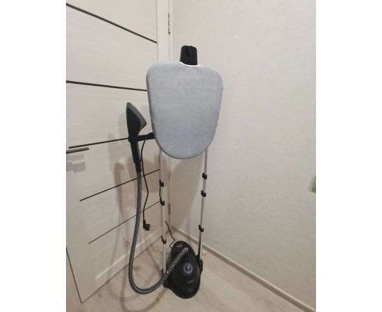 Отпариватель оснащён гладильной доской, которая может быть расположена горизонтально, вертикально и под наклоном. Она значительно облегчает и ускоряет процесс отпаривания. Также на ней располагается крючок, на который можно вешать вешалку с одеждой.