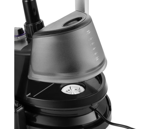 Ёмкость съёмного резервуара составляет 1,35 л. Такого объёма хватит минимум на 35 минут беспрерывного отпаривания. Время нагрева составит не более 1 минуты. Под резервуаром находится ванночка. В ней - фильтр для воды, изготовленный из пластмассы.