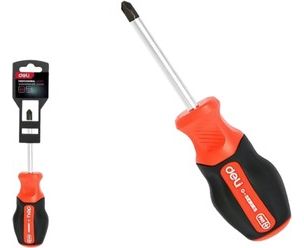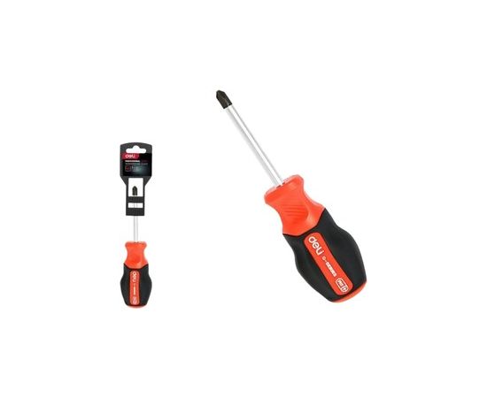 Отвертка крестовая DELI DL3459 PH2x38мм сталь S2, матовый стержень, двухкомпонентная прорезиненная рукоять