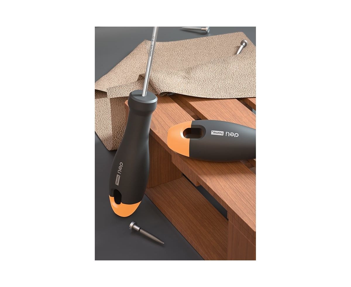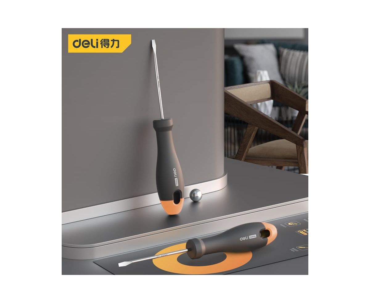 Шлицевая отвёрткаDeliHomeSeriesGrayHT1103C используется для работ с резьбовыми соединениями в процессе ремонта или монтажа.