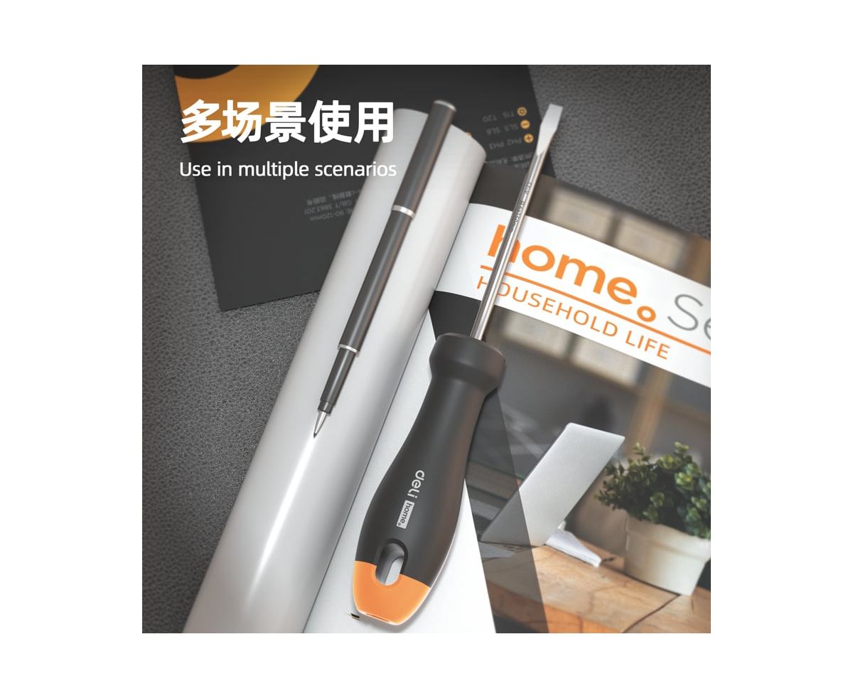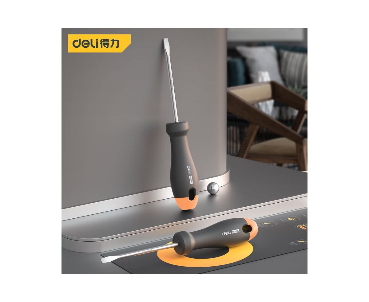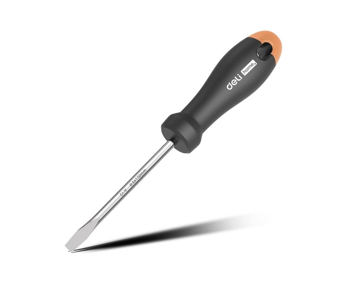 Шлицевая отвёртка Deli "Home Series Gray" HT1106C(SL6x150мм) используется для работ с резьбовыми соединениями в процессе ремонта или монтажа.
