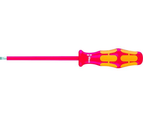 Отвёртка 1000 V 160I 0,6 х 3,5 х 100 мм Wera WE-006110 - это профессиональный ручной инструмент, который используется для винтов с прямым шлицем. Отвёртку очень удобно хранить, поскольку она небольших размеров и имеет малый вес.