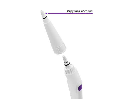 Можно использовать пароочиститель как с насадками, так и без насадок. Для подсоединения струйной насадки установите ее на паровое сопло пистолета до упора и поворачивайте кольцо струйной насадки справа налево для фиксации.