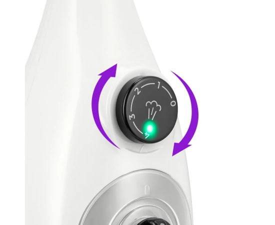 Регулятор подачи пара позволяет настраивать интенсивность выходящего пара. Это очень удобно при очистке разных типов поверхностей с разным уровнем загрязнения. Чем сильнее загрязнение, тем больше пара потребуется.