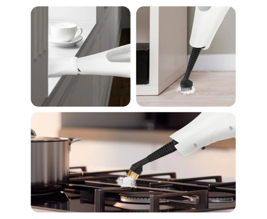 Конструкция «2 в 1» предусматривает наличие ручного модуля паровой швабры, который удобно использовать с насадками. С помощью насадок можно очистить большинство вещей в доме, а также отпарить одежду.