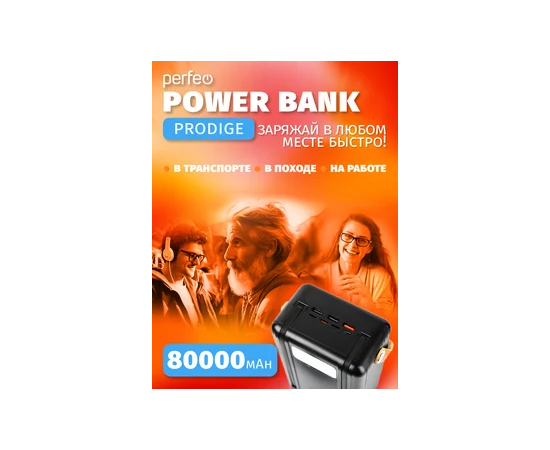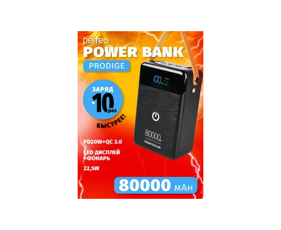 Повербанк Perfeo PRODIGE 80000 mAh/LED/PD + QC 3.0/Type-C/Lightning/3 USB/Выход: 5A, max 22.5W, черный