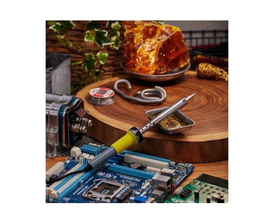 Нагреватель имеет керамическую трубку, которая повысит энергоэффективность прибора. Паяльник оснащен ударопрочной рукояткой из термостойкого пластика, с резиновой накладкой, которая сделает работу с инструментом легкой и приятной.