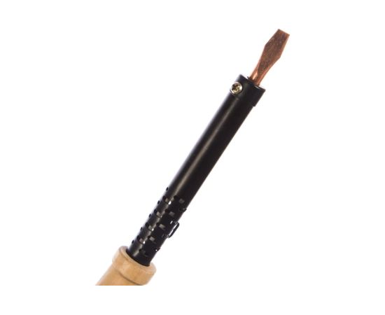 Паяльник ПД 220В 100Вт деревянная ручка ЭПСН Россия REXANT 12-0291 служит для пайки и лужения деталей и заготовок из стали и меди. Подходит для работы с оловянно-свинцовыми припоями. Нагревательный элемент представляет собой нихромовую спираль. Рабочая часть устройства выполнена из меди высокого качества. Рукоятка изготовлена из древесины, имеет удобную форму. Сетевой шнур имеет надежную двойную ПВХ изоляцию. Провод с прочной вилкой, совместимой с отечественными розетками. Паяльник соответствует II классу электрозащиты, может использоваться как в домашних условиях, так и на производственных участках.