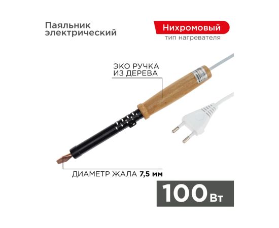 Паяльник Rexant 12-0291 ЭПСН 220В 100Вт деревянная ручка ПД