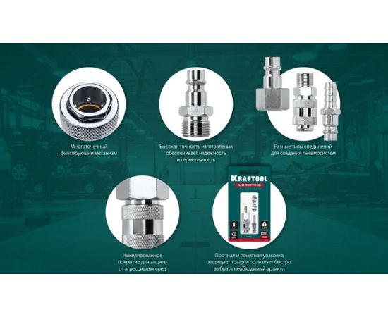 Переходник KRAFTOOL 06593-1/2 предназначен для пневмоинструмента, внутренняя резьба 1/2" - рапид муфта "мама"