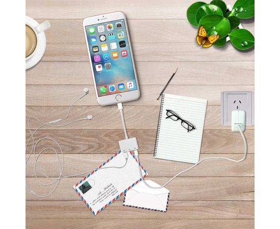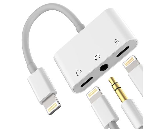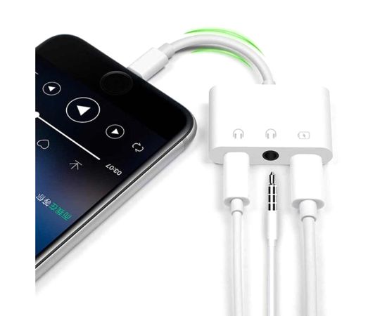 Переходник MH035, Lightning - Jack 3.5/Dual Lightning, 10 см, белый
