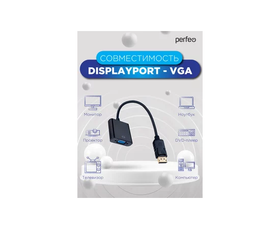Переходник PERFEO DisplayPort вилка - VGA розетка (А7025)