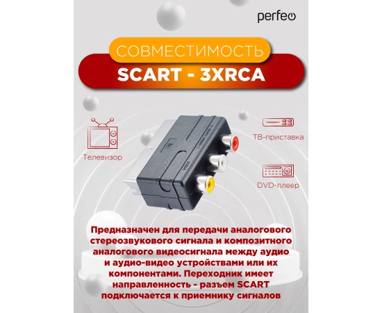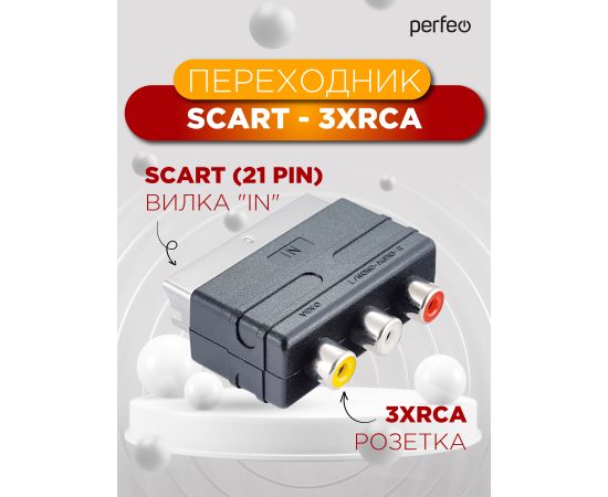 Переходник PERFEO SCART (21 pin) вилка "IN" - 3xRCA розетка, видео + стерео-аудио (A7007)