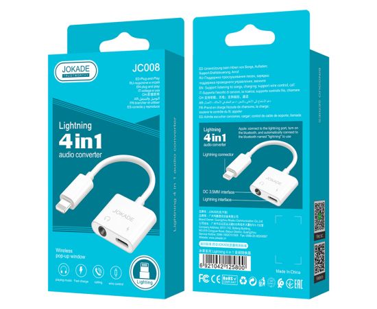 Переходник с 3.5 jack и Lightning на Lightning Jokade JC008 (white)