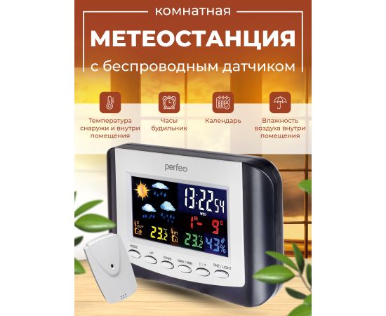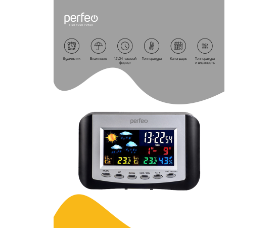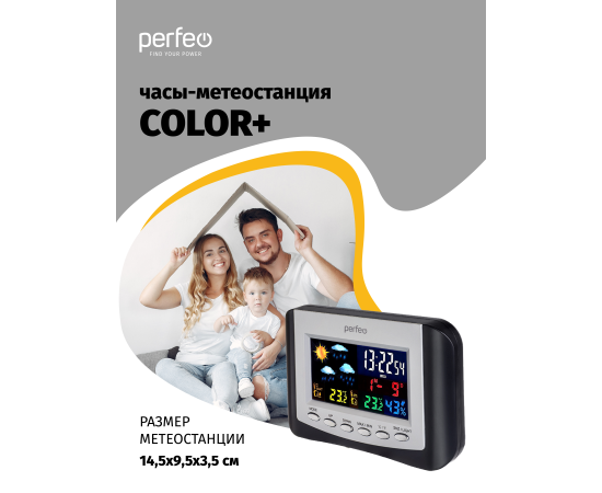 Часы-метеостанция Perfeo "Сolor+", (PF-S3332BS), черные