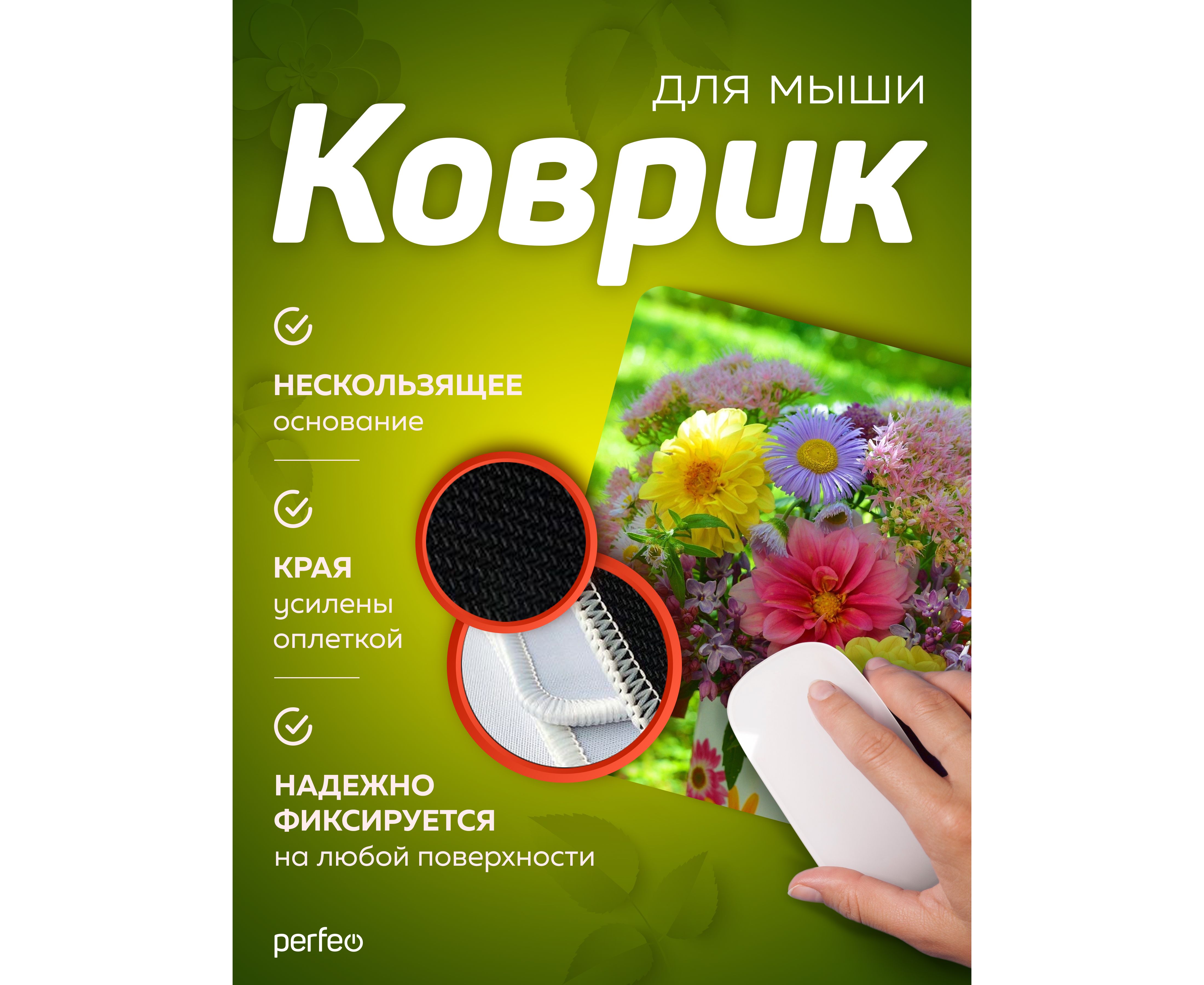 Компьютерный коврик для мыши из серии Цветы обладает гладкой тканевой поверхностью, которая обеспечивает точность и плавность движения - мышь скользит быстро и четко. Оверлочная строчка по краю увеличивает износостойкость и срок службы. Не скользящая резиновая основа надёжно фиксирует коврик на столе. Небольшой вес и хорошая гибкость позволят Вам взять коврик для мыши куда угодно для комфортного пользования ноутбуком. Качественный принт будет вас долгое время радовать. Подходит для оптических и лазерных мышей с любой чувствительностью и любым типом сенсора.