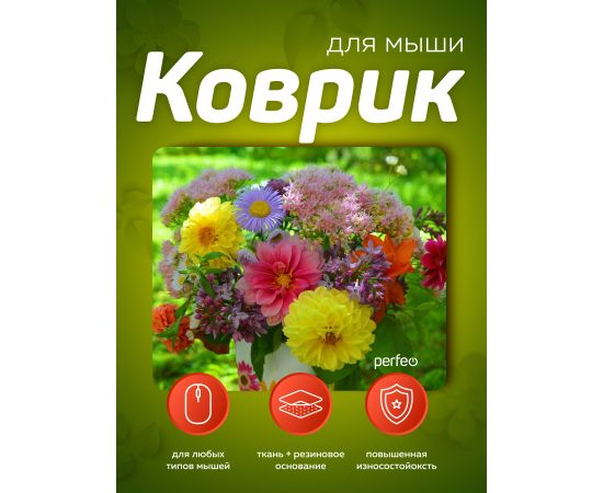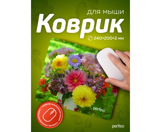 Perfeo Коврик для компьютерной мыши "Цветы", Рис.6 (240*200*2 мм), ткань+резиновое основание