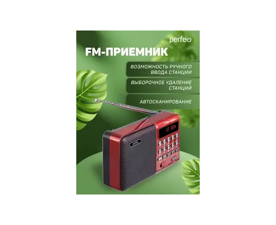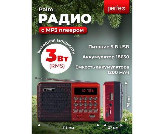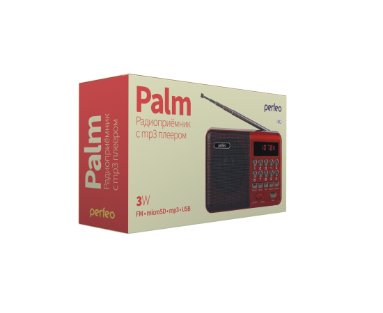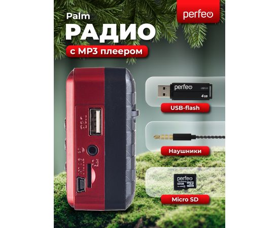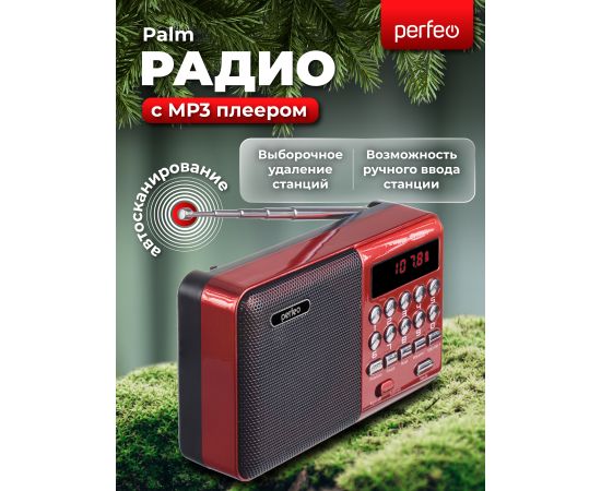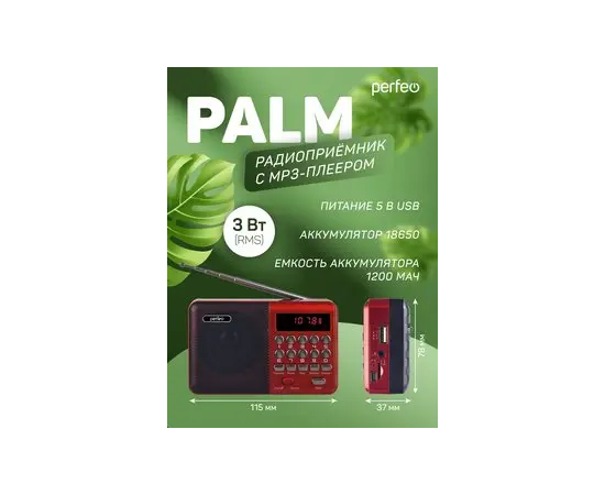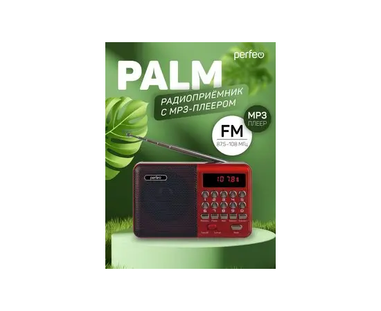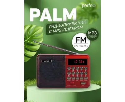 Цифровой радиоприемник Perfeo PALM FM 87.5-108МГц/ MP3/ питание USB или 18650/ Красный (i90-RED), (Арт. PF_A4871)