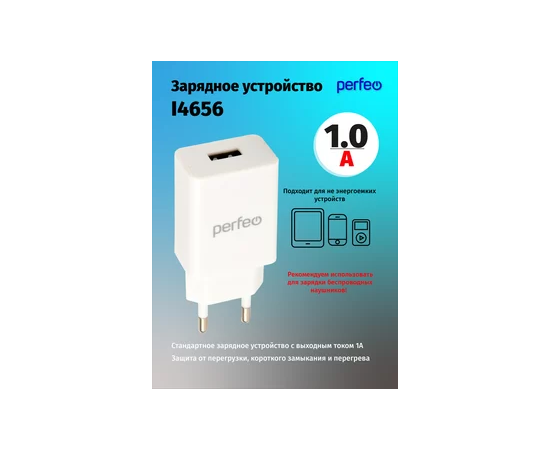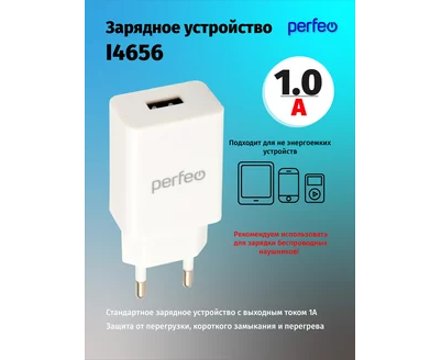 Сетевое зарядное устройство PERFEO с разъемом USB, 1А, белый (I4656)