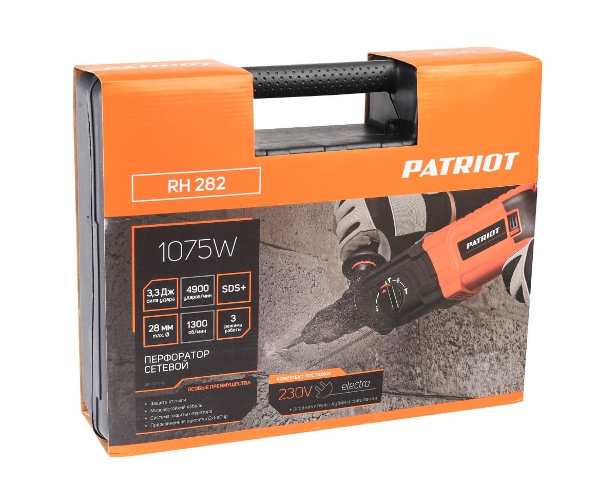 Перфоратор Patriot RH 282 (140301282) 1075Вт, 4900уд/мин, 1300об/мин, 3,3Дж