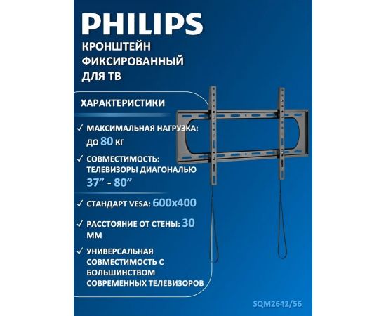 Кронштейн для ТВ 37"-80", Max 80кг, расстояние от стены 30мм