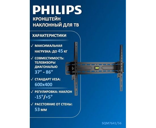 Кронштейн для ТВ 37"-86", Max 45кг, расстояние от стены 53мм