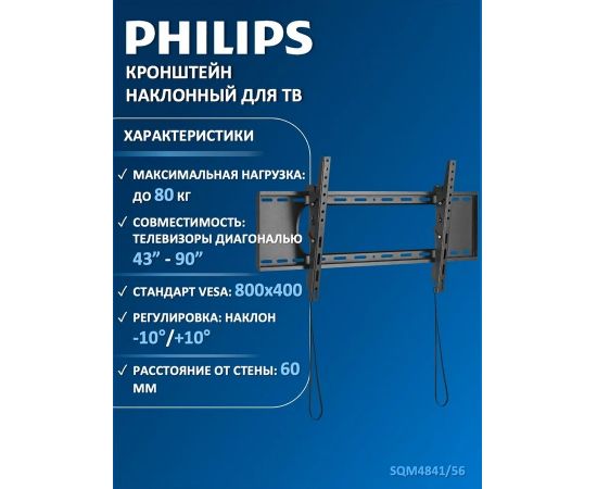 Кронштейн для ТВ 43"-90", Max 80кг, расстояние от стены 60мм