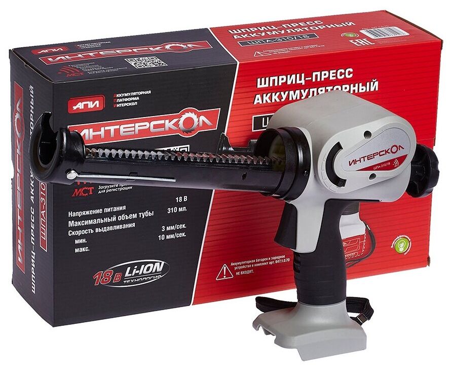 Шприц-пресс ИНТЕРСКОЛ ШПА-310/18 (647.1.0.70) аккум, Li-ion АПИ, картон, без АКБ и ЗУ