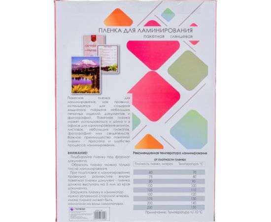 Пленка-заготовка для ламинирования ГЕЛЕОС A3, 303х426 мм, 125 мкм, глянцевая, 100 шт LPA3-125 предназначена для ламинирования документов и сертификатов.