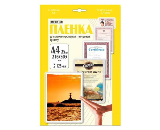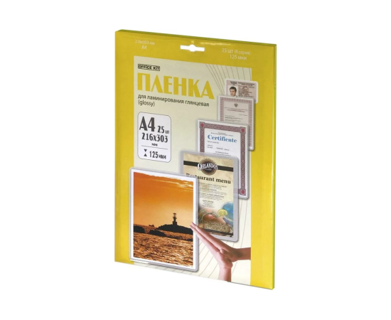 Пленка для ламинирования Office Kit LPA4125 125мкм 216х303 мм 25шт глянцевая A4