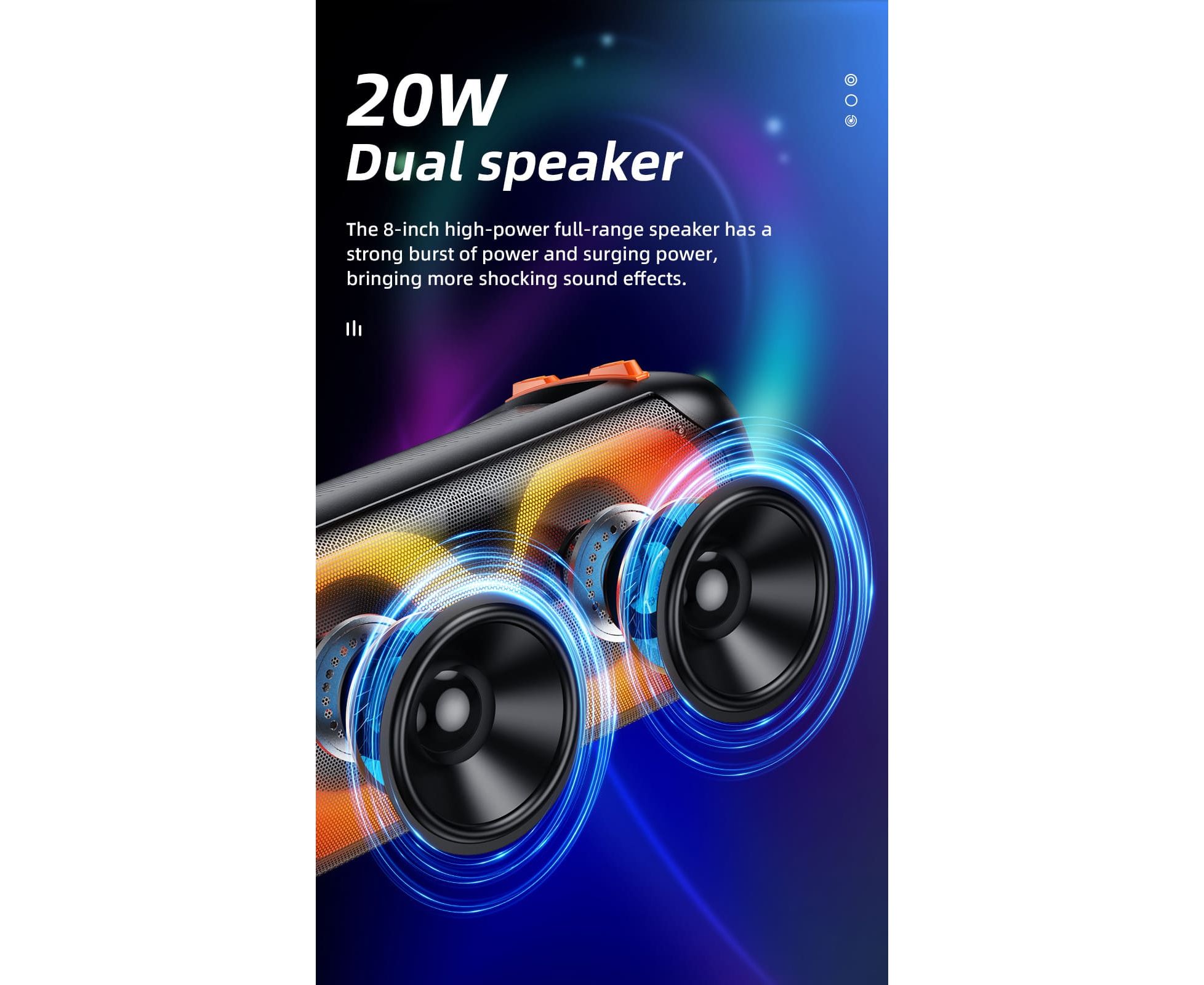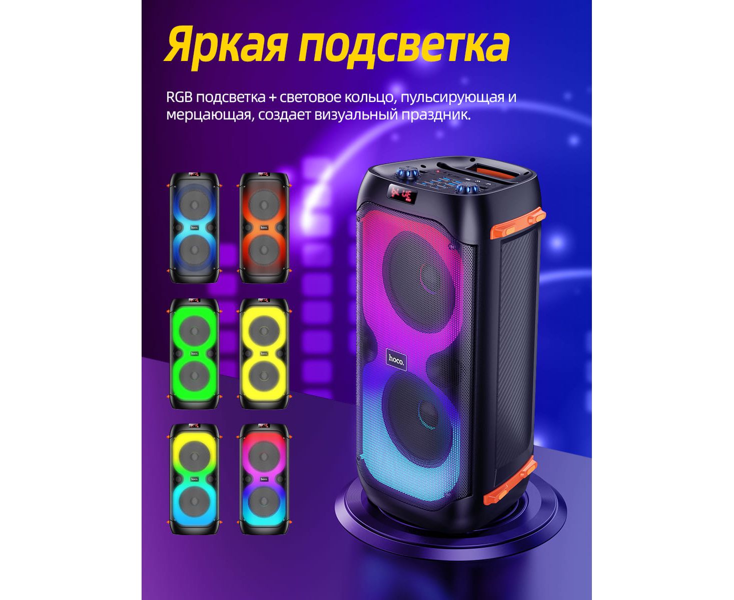 Поддерживает BT, TF-карту, USB-накопитель, AUX, FM и другие режимы.