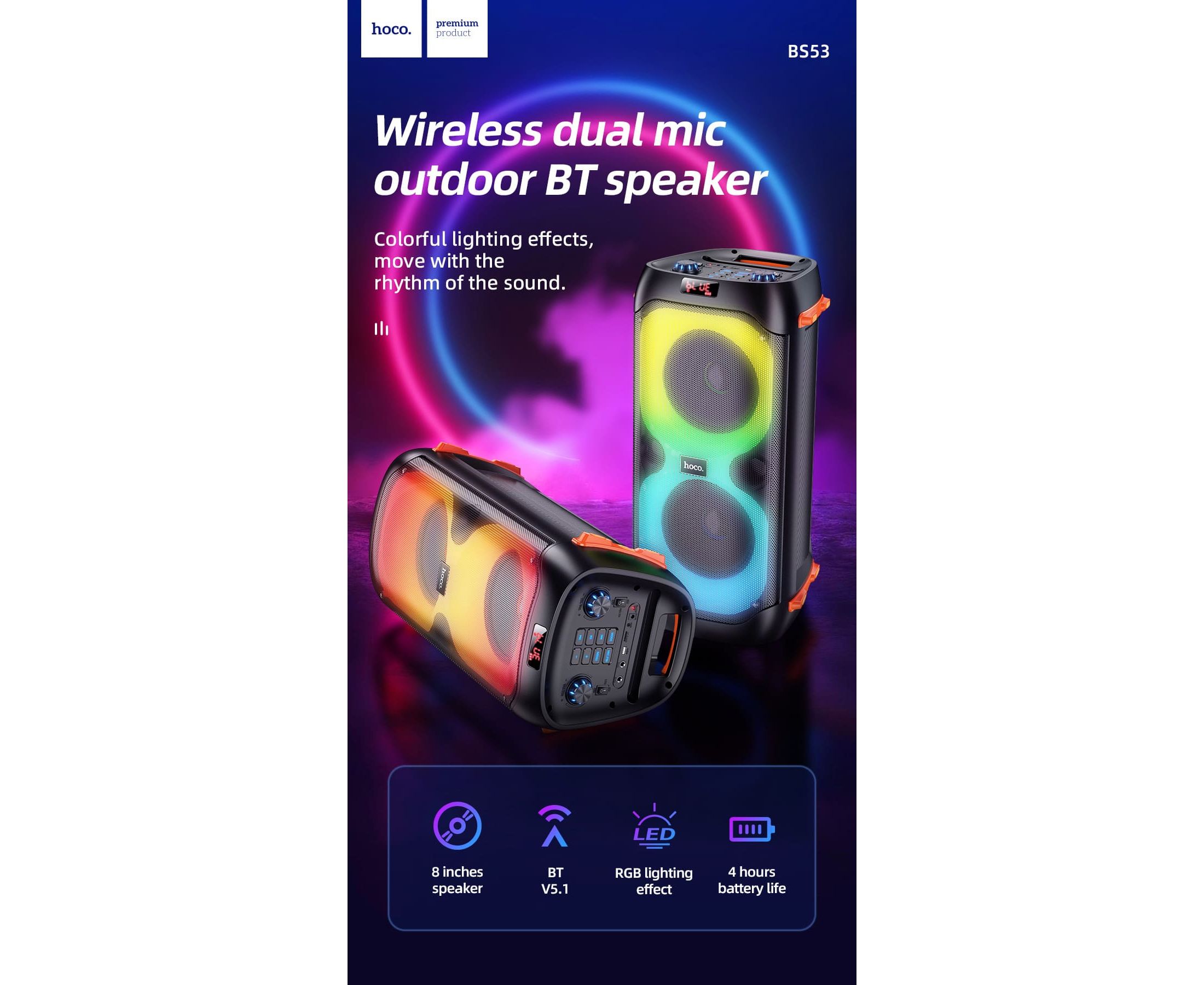 Портативная колонка HOCO BS53 Manhattan wireless dual mic outdoor (черный)