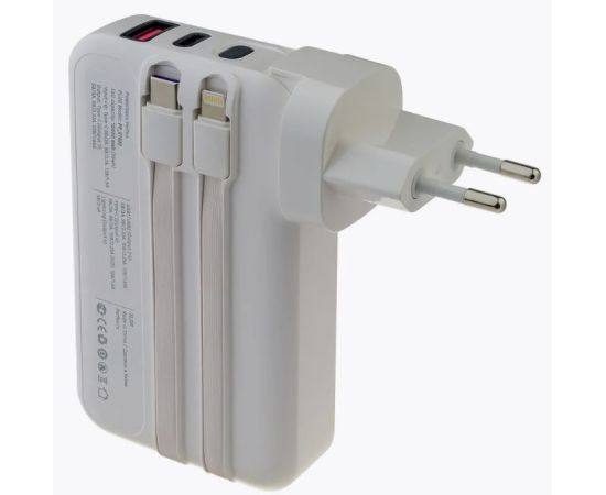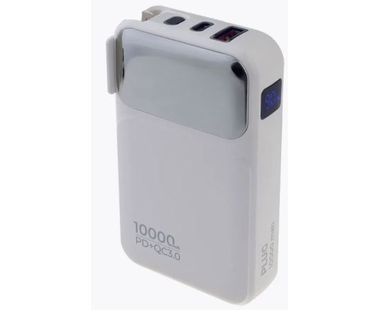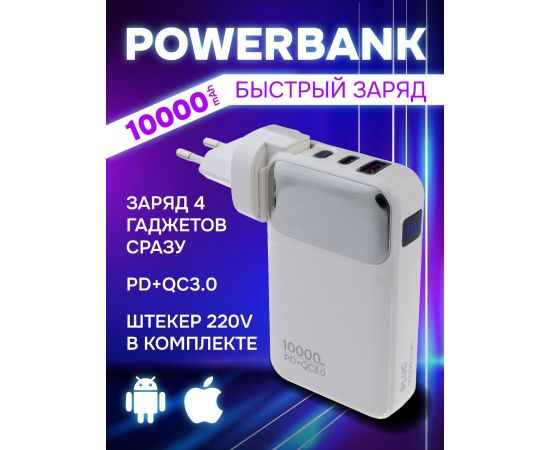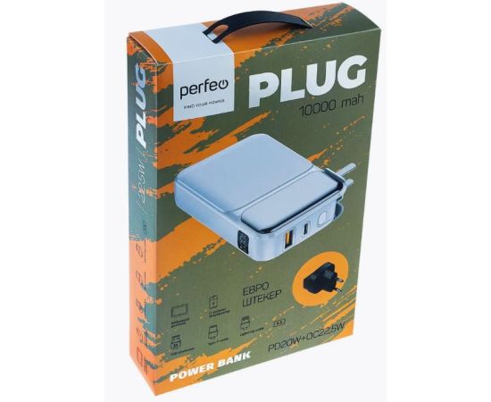 Портативное зарядное устройство Perfeo PLUG 10000 mAh/LED дисплей/Вход 230V/PD+QC 3.0/Выход: 5A, max 22.5W/ цвет - белый