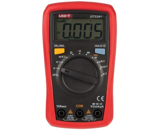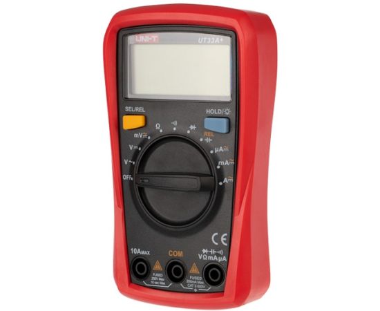 Мульти́метр — электроизмерительный прибор, который включает в себя несколько функций и набор измеряемых параметров. Все приборы серии UT-33+ измеряют постоянное и переменное напряжение, постоянный и переменный ток и сопротивление в цепи. А также с помощью данного прибора можно проводить тестирование диодов, транзисторов, батареек и осуществлять прозвонку целостности цепи.