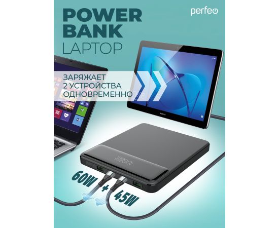 Повербанк для Ноутбука! Perfeo LAPTOP 105W 20000 mAh/LED дисплей/PD + QC 3.0/2 Type-C/2USB/Выход: 5A,max105W Черный