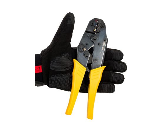 Ручные пресс-клещи SHTOK ПК-6и 03010 предназначен для опрессовки изолированных наконечников. Инструмент обладает небольшими размерами для комфортной работы и компактного хранения. Опрессовка производится одним движением. Диапазон сечений: 0,5-1,5; 1,1-2,5; 2,6-6,0 мм2.
